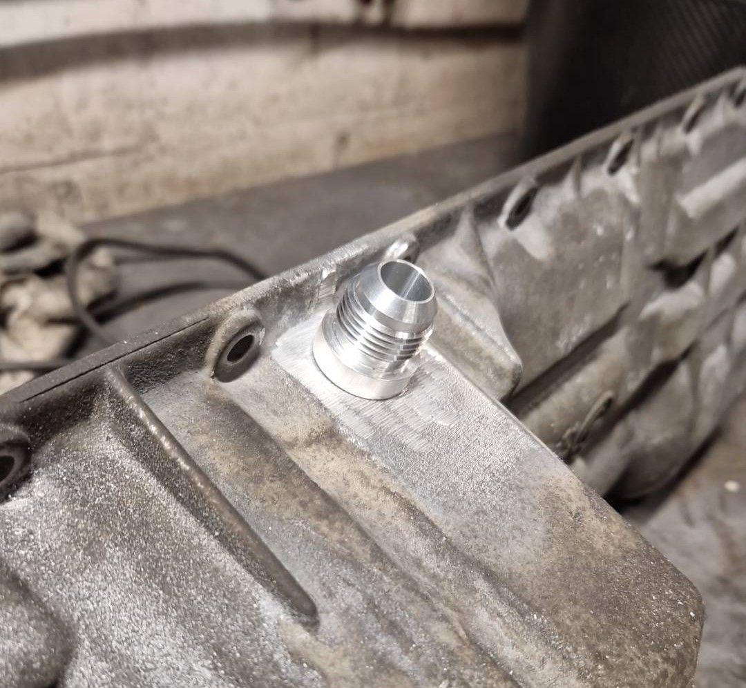 Öljynpaluu päädyttiin tekemään hitsaamalla AN10 nippa öljypohjaan sen helppouden takia. Toinen vaihtoehto olisi ollut jakoketjun suojakoteloon, mutta tämä olisi vaatinut huomattavasti enemmän moottorin purkamista.